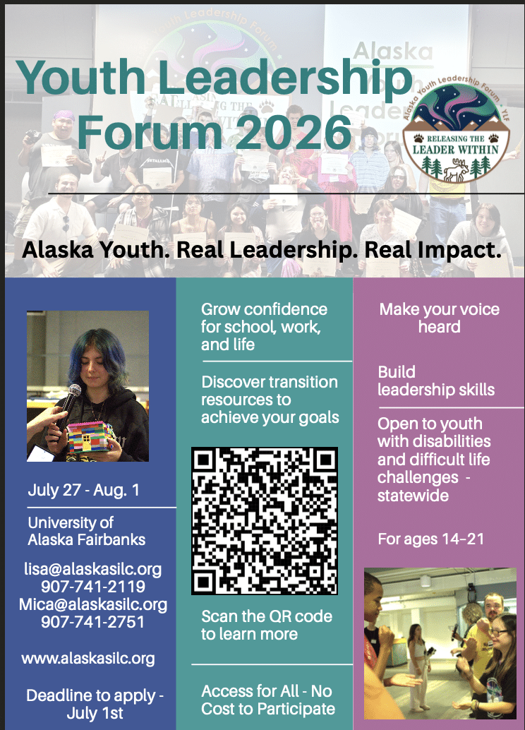 The Alaska Youth Leadership Forum (YLF) is a free transition program for youth with disabilities between the age of 14-24. The YLF brings together young people with disabilities from across Alaska to build leadership skills, gain confidence, and prepare for their future.